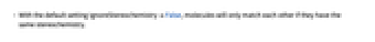 - With the default setting IgnoreStereochemistryFalse, molecules will only match each other if they have the same stereochemistry.