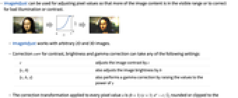 - ImageAdjust can be used for adjusting pixel values so that more of the image content is in the visible range or to correct for bad illumination or contrast.