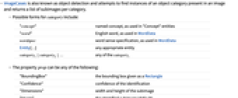 - ImageCases is also known as object detection and attempts to find instances of an object category present in an image and returns a list of subimages per category.