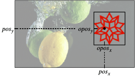 - The position pos in image or the position opos in overlay can be specified in the following ways: