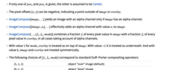 - The following choices of {fi,fo,mode} correspond to standard Duff–Porter compositing operators: