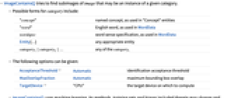 - ImageContainsQ tries to find subimages of image that may be an instance of a given category.
