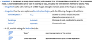 - ImageMesh has the same options as BoundaryMeshRegion, with the following changes and additions: