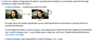 - For 2D images and videos, ImageRotate[input,side] rotates input to make the top of the image be on the specified side. ImageRotate[input,side1->side2] rotates input to make side1 be on side2. Possible side specifications are: Top, Bottom, Left, Right.