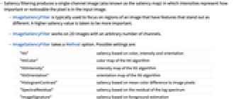 - ImageSaliencyFilter takes a Method option. Possible settings are: