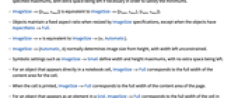 - Objects maintain a fixed aspect ratio when resized by ImageSize specifications, except when the objects have AspectRatio->Full.