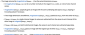 - In ImageSubtract[image,x], x can be a number normally in the range 0 to 1, a color, or a list of color channel values.