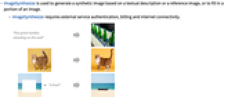 - ImageSynthesize requires external service authentication, billing and internet connectivity.