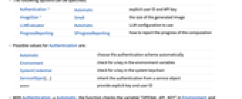 Authentication Automatic explicit user ID and API key ImageSize Small the size of the generated image LLMEvaluator Automatic LLM configuration to use ProgressReporting $ProgressReporting how to report the progress of the computation - Possible values for Authentication are: