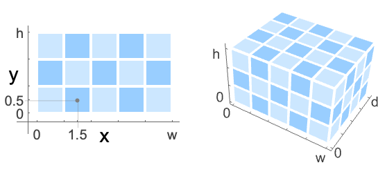 represents the center of the pixel at the bottom-left corner. - The pixel value val can be in one of the following forms: