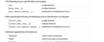 {"format",elem} a single element {"format",{elem1,elem2,…}} multiple elements {"format",elem1,sublelem1,subelem2,…} subelements of subelements of elem1 - Elements supported by all formats are: