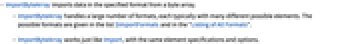- ImportByteArray works just like Import, with the same element specifications and options.