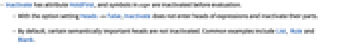 - By default, certain semantically important heads are not inactivated. Common examples include List, Rule and Blank.
