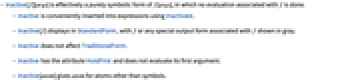 - Inactive[f][args] is effectively a purely symbolic form of f[args], in which no evaluation associated with f is done.