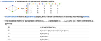 - IncidenceMatrix is also known as the vertex-edge incidence matrix.