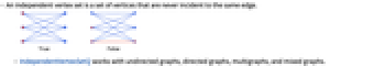 - IndependentVertexSetQ works with undirected graphs, directed graphs, multigraphs, and mixed graphs.