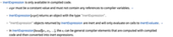 - In InertExpression[head][e1,e2,…], the ei can be general compiler elements that are computed with compiled code and then converted into inert expressions.