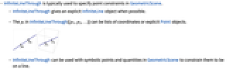 - InfiniteLineThrough is typically used to specify point constraints in GeometricScene.