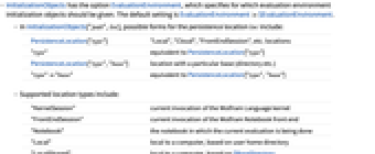 - InitializationObjects has the option EvaluationEnvironment, which specifies for which evaluation environment initialization objects should be given. The default setting is EvaluationEnvironment:>$EvaluationEnvironment.