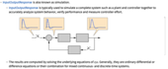 - InputOutputResponse is typically used to simulate a complete system such as a plant and controller together to accurately analyze system behavior, verify performance and measure controller effort.
