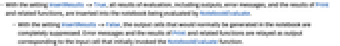 - With the setting InsertResults->False, the output cells that would normally be generated in the notebook are completely suppressed. Error messages and the results of Print and related functions are relayed as output corresponding to the input cell that initially invoked the NotebookEvaluate function.