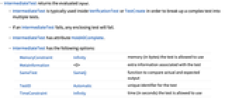 - IntermediateTest is typically used inside VerificationTest or TestCreate in order to break up a complex test into multiple tests.