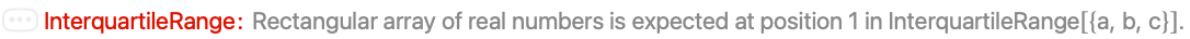 is given by Quartiles[data]. » - For MatrixQ data, the interquartile range is computed for each column vector with InterquartileRange[{{x1,y1,…},{x2,y2,…},…}], equivalent to {InterquartileRange[{x1,x2,…}],InterquartileRange[{y1,y2,…}]}. »