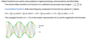 - Hilbert transforms are used to solve problems in signal processing, communications and other fields.