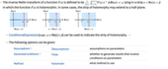is holomorphic. In some cases, the strip of holomorphy may extend to a half-plane. - ConditionalExpression[expr,α<Re[s]<β] can be used to indicate the strip of holomorphy. »