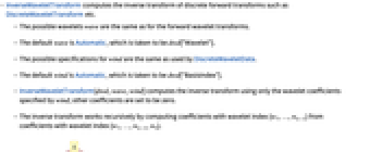 - InverseWaveletTransform[dwd,wave,wind] computes the inverse transform using only the wavelet coefficients specified by wind; other coefficients are set to be zero.