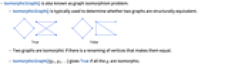 - IsomorphicGraphQ is also known as graph isomorphism problem.