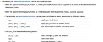 - With the option ItemDisplayFunctionf, the specified function will be applied to all items in the dataset before displaying them.