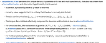 . - JarqueBeraALMTest[data,dist,"HypothesisTestData"] returns a HypothesisTestData object htd that can be used to extract additional test results and properties using the form htd["property"].