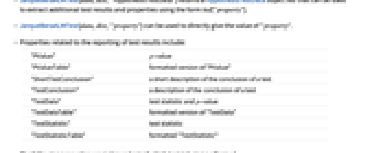 - Properties related to the reporting of test results include: