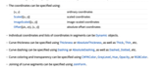 {x,y} ordinary coordinates Scaled[{x,y}] scaled coordinates ImageScaled[{x,y}] image-scaled coordinates Offset[{dx,dy},{x,y}] absolute offset coordinates - Individual coordinates and lists of coordinates in segments can be Dynamic objects.