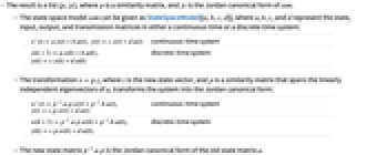 The Jordan canonical form of a state-space model is the similarity transformation associated with the Jordan decomposition of its state matrix: