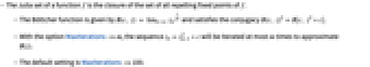 - The Julia set of a function f is the closure of the set of all repelling fixed points of f.