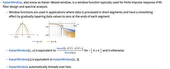 Wolfram Language. (2012). KaiserWindow. Wolfram Language & System Documentation Center. Retrieved from https://reference.wolfram.com/language/ref/KaiserWindow.html