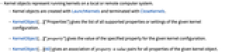 - KernelObject[…]["property"] gives the value of the specified property for the given kernel configuration.