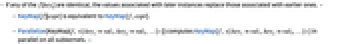 In KeyMap[f,assoc], if applying f produces repeated keys, later instances replace earlier ones: