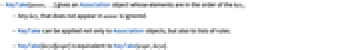 - KeyTake[assoc,…] gives an Association object whose elements are in the order of the keyi.