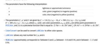 l lightness or approximate luminance a color, green (negative) to magenta (positive) b color, blue (negative) to yellow (positive) - The parameters
