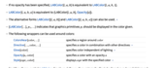 - {LABColor[…], p1, …} indicates that graphics primitives pi should be displayed in the color given.