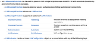 - An LLMExampleFunction can be used to generate text using a large language model (LLM) with a prompt dynamically generated from a list of examples.