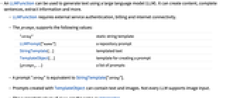 - Prompts created with TemplateObject can contain text and images. Not every LLM supports image input.