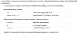 Automatic the output nodes (default) All all the nodes in a graph {namei,…} a subset of the graph nodes - When the computation of a node is required, all its dependencies are computed first.
