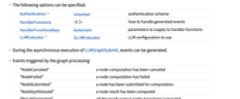 Authentication Inherited authentication scheme HandlerFunctions how to handle generated events HandlerFunctionsKeys Automatic parameters to supply to handler functions LLMEvaluator $LLMEvaluator LLM configuration to use - During the asynchronous execution of LLMGraphSubmit, events can be generated.