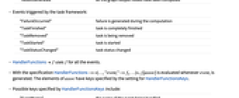 "FailureOccurred" failure is generated during the computation "TaskFinished" task is completely finished "TaskRemoved" task is being removed "TaskStarted" task is started "TaskStatusChanged" task status changed - HandlerFunctionsf uses f for all the events.