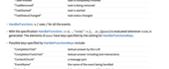 - With the specification HandlerFunctions-><|…,"eventi"->fi,…|>, fi[assoc] is evaluated whenever eventi is generated. The elements of assoc have keys specified by the setting for HandlerFunctionsKeys.