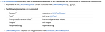 "Request" request as an LLMToolRequest "Tool" tool as an LLMTool "InterpretedParameterValues" interpreted parameter values "Output" tool output "ResponseString" response string - LLMToolResponse objects can be generated with GenerateLLMToolResponse.
